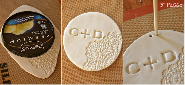 Depois é só colar os passarinhos no prato, deixar secar e finalizar com uma fita ou até mesmo barbante e amarrar alianças (6º Passo).